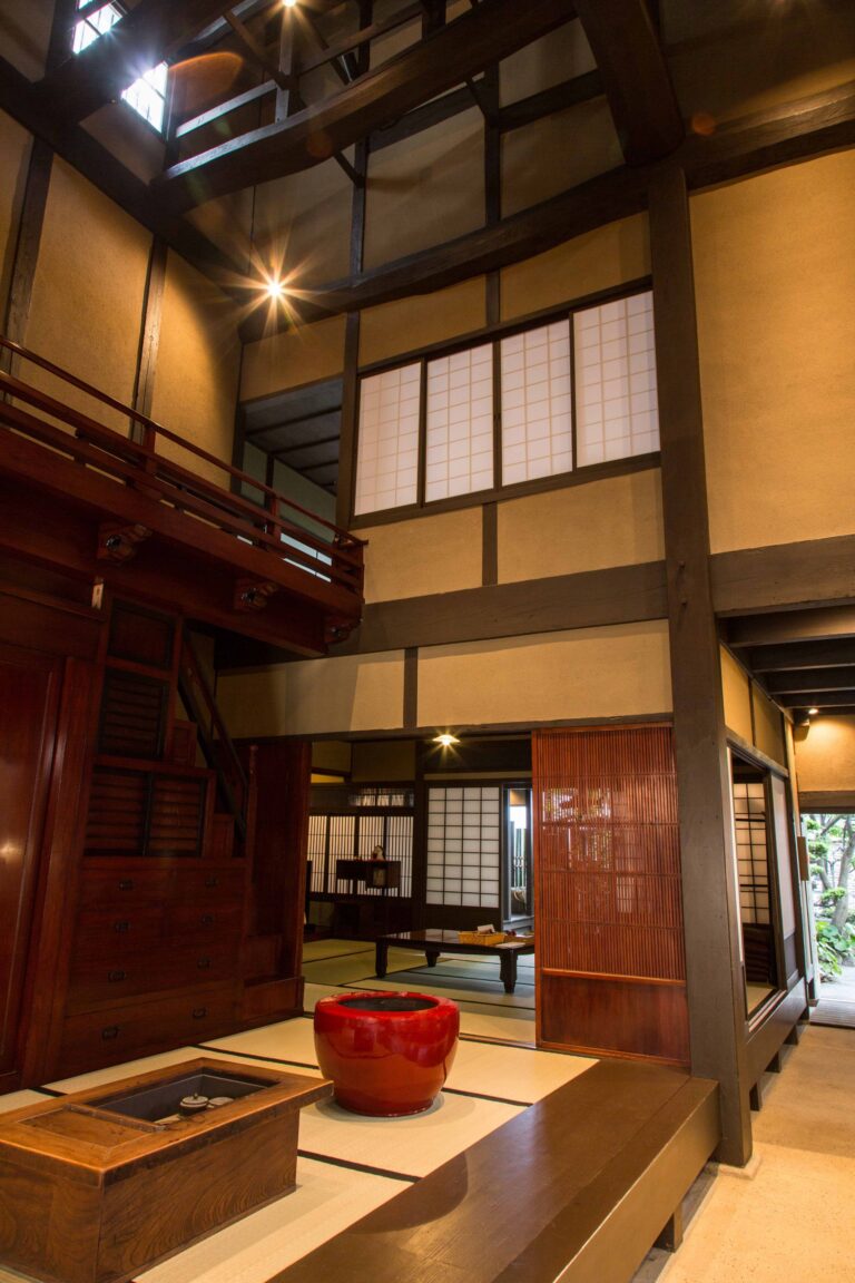 明治時代の町家を中心に展示棟、みやげ処があり、町家が並んでいるような趣のある建物です。