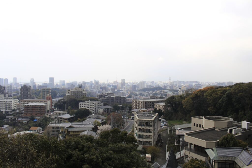 地下鉄桜坂駅から筑肥新道へと抜けるバス通り沿いにある南公園西駐車場の一角に、南公園西展望台が立っています。少しややこしい名称ですが、この展望台からの眺めは一押しです。
