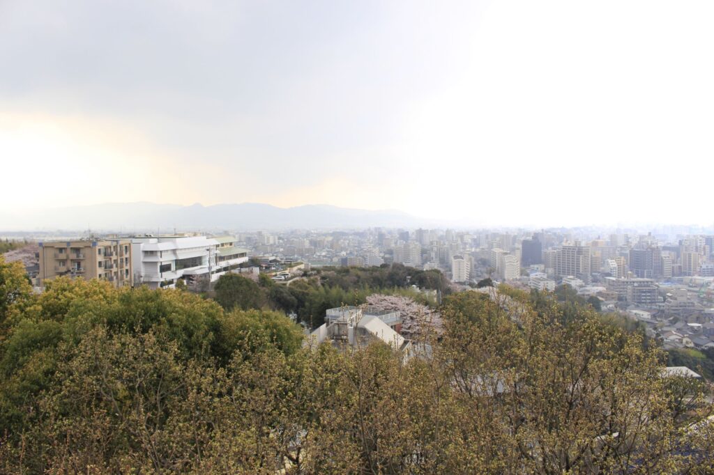 東に宝満山、北に海の中道、西に能古島や糸島、南に油山や背振山と、360度に広がる景色を見渡せます。
