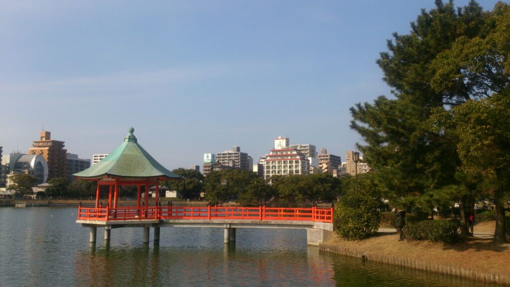 大濠公園は福岡市のほぼ中央に位置し、総面積が約39万8千平方メートルあり、うち約22万6千平方メートルの池を有した、全国有数の水景公園です。