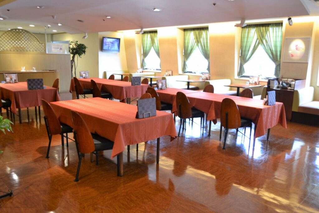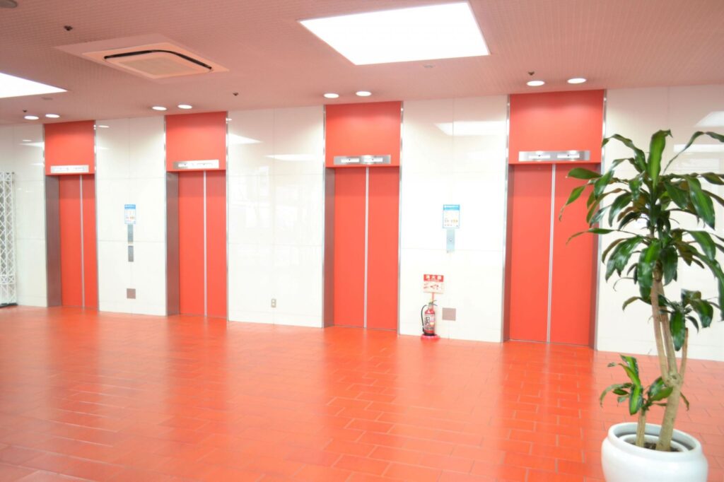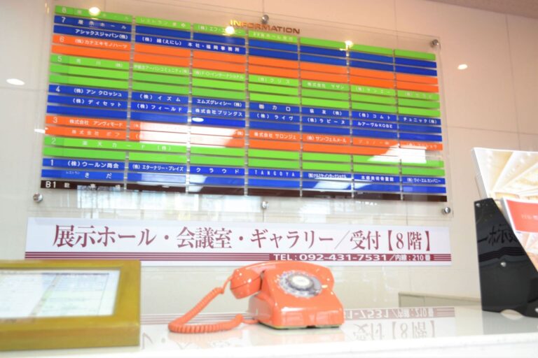 ビルの1階は館外から館内まで続く赤いタイルの床やピンクの電話のインフォメーション等レトロな雰囲気が残っています。
