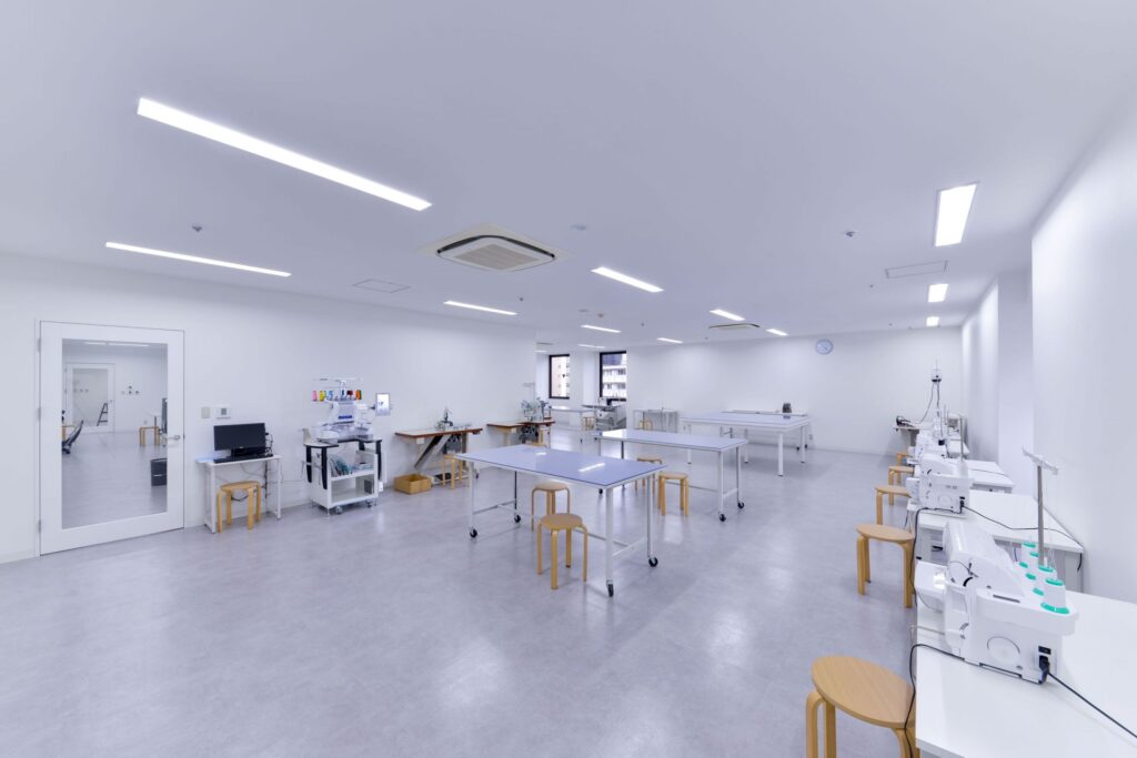 一方、6階のものづくり施設Revo Labo baseでは真っ白な空間のミシンルームやフォトスタジオ等がご利用いただけます。